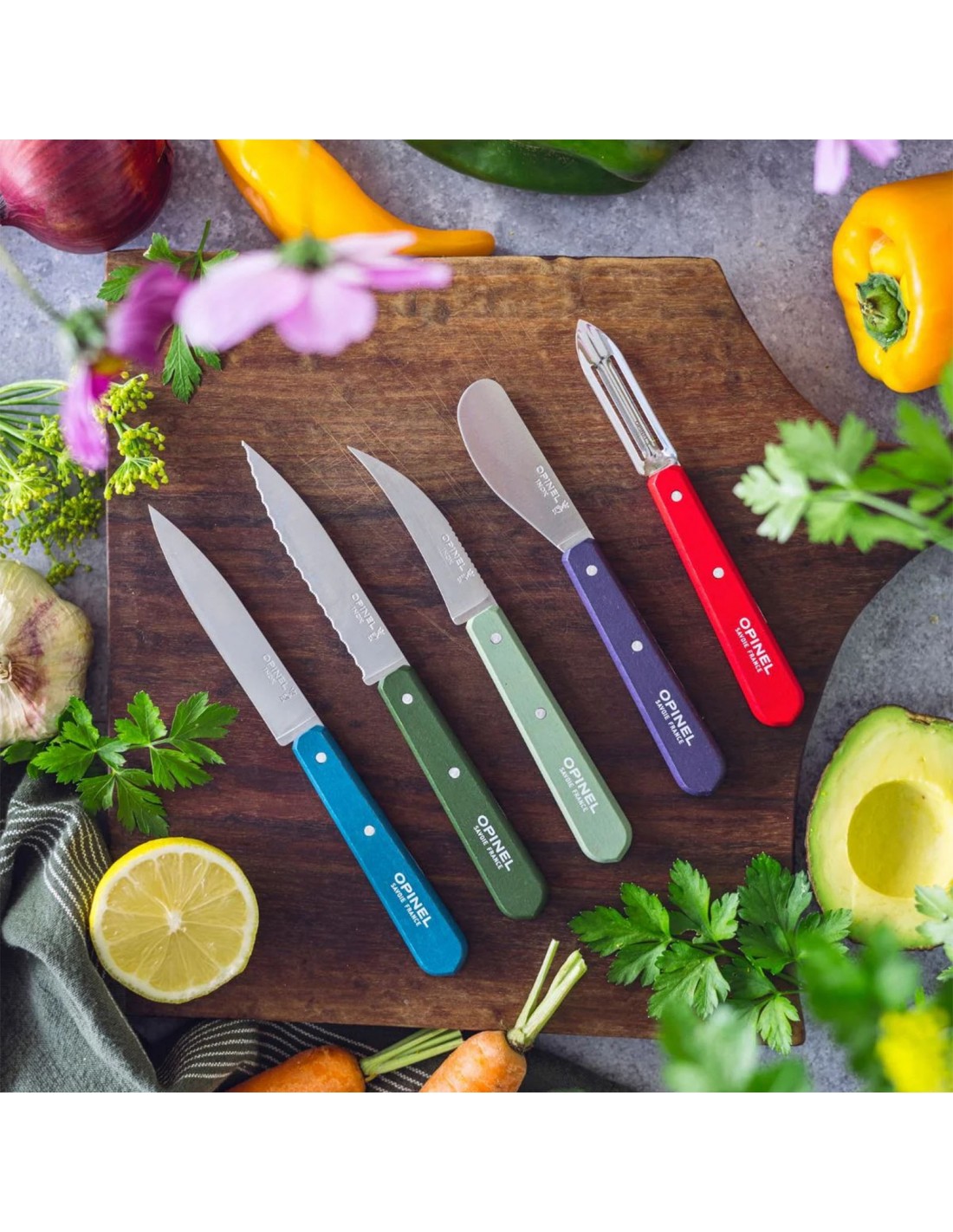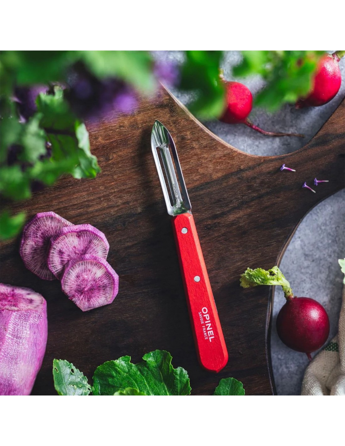 Lamele decojitoarelor Opinel sunt ascutite pe ambele parti, astfel ca pot fi folosite atat de dreptaci, cat si de stangaci.